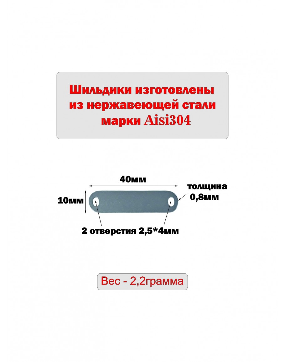 Набор шильдиков матовых из нержавеющей стали AISI304, размер 40х10х0,8 мм (10 шт.)