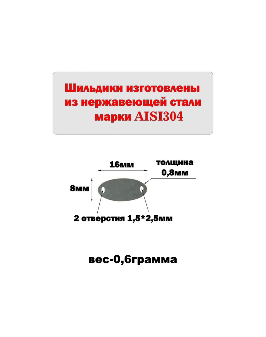 Набор шильдиков овальных матовых из нержавеющей стали AISI304, размер 16х8х0,8 мм (10 шт.)