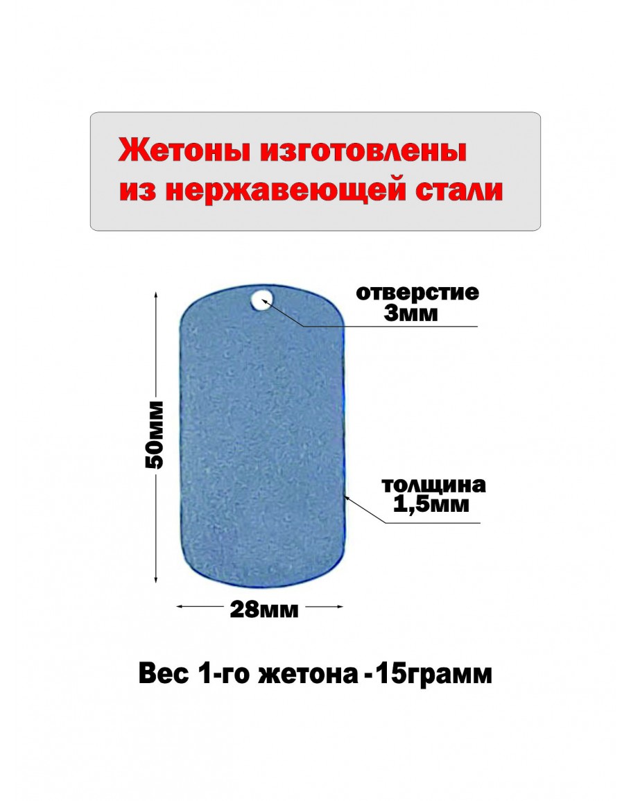 Жетон из нержавеющей стали AISI304, размер 50х28мм