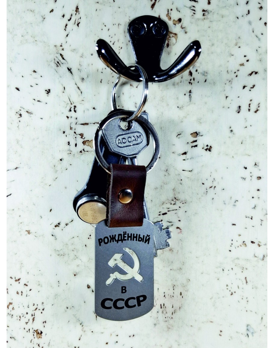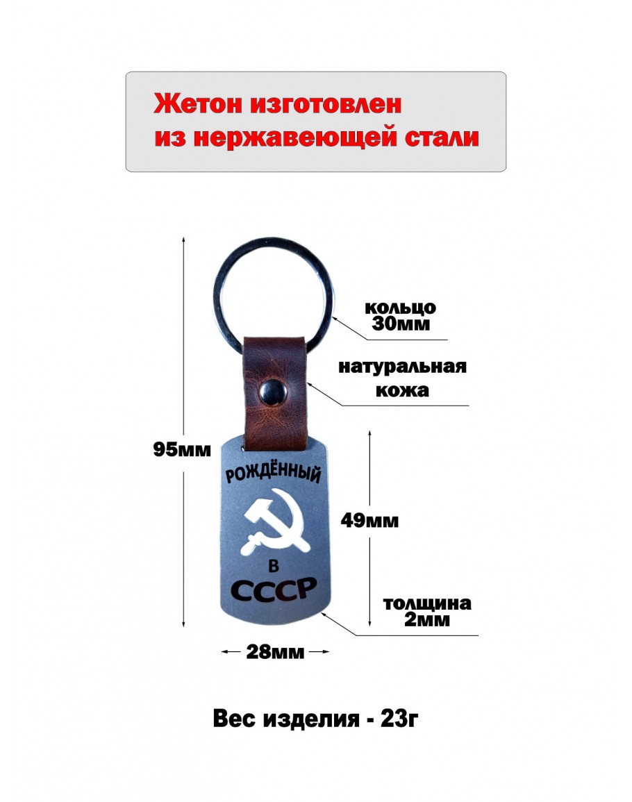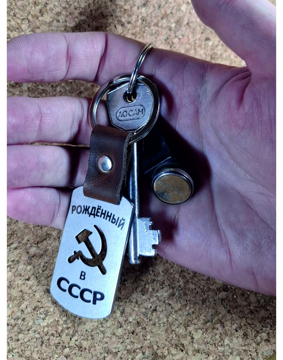Жетон с вырезанным Серпом и Молотом и гравировкой Рожденный в СССР из нержавеющей стали AISI304 (Размер 49х28 мм, толщина 2 мм) - оригинальный и уникальный подарок для людей, ценящих свою страну.
